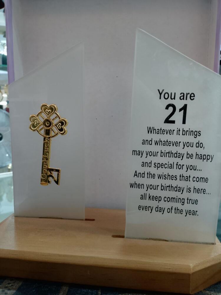 21st Double Crystal Glass On Wood Base Gift . Free Engraving with Purchase