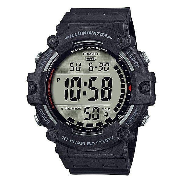 Described as a “wide face” model, the LCD display resembles full-digital Pro Trek watches with its larger digits. The bezel has four G-Shock-like bumpers that protect the display and give the watch a rugged style (but a closer look reveals that the front screws are not really screws). The cost-cutting is most apparent with the use of resin glass, which is inferior to the mineral glass that is typically used for G-Shock and Pro Trek watches. One thing in the AE-1500WH’s favor is the approximate 10-year battery life, thanks to the use of a large CR2032 battery. It is also water-resistant to 100 meters.